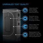 Dyrketeltet er produsert i slitesterkt Oxford-stoff og bygget rundt en solid stålramme. Innsiden er kledd med laboratorietestet reflekterende Mylar som maksimerer lysutnyttelsen. Forbedret lystetting og stort inspeksjonsvindu gir god oversikt uten å påvirke klimaet.