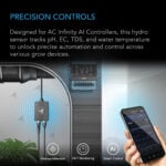 Hydro Sensor AI+ er utviklet for bruk med AC Infinity sine AI-kontrollere og gir nøyaktig overvåking av vannkvalitet i hydroponiske systemer, akvarier og andre væskebaserte miljøer. Sensoren muliggjør automatiserte justeringer basert på data for pH, EC, TDS og temperatur, som bidrar til optimal næringsbalanse og effektiv drift.