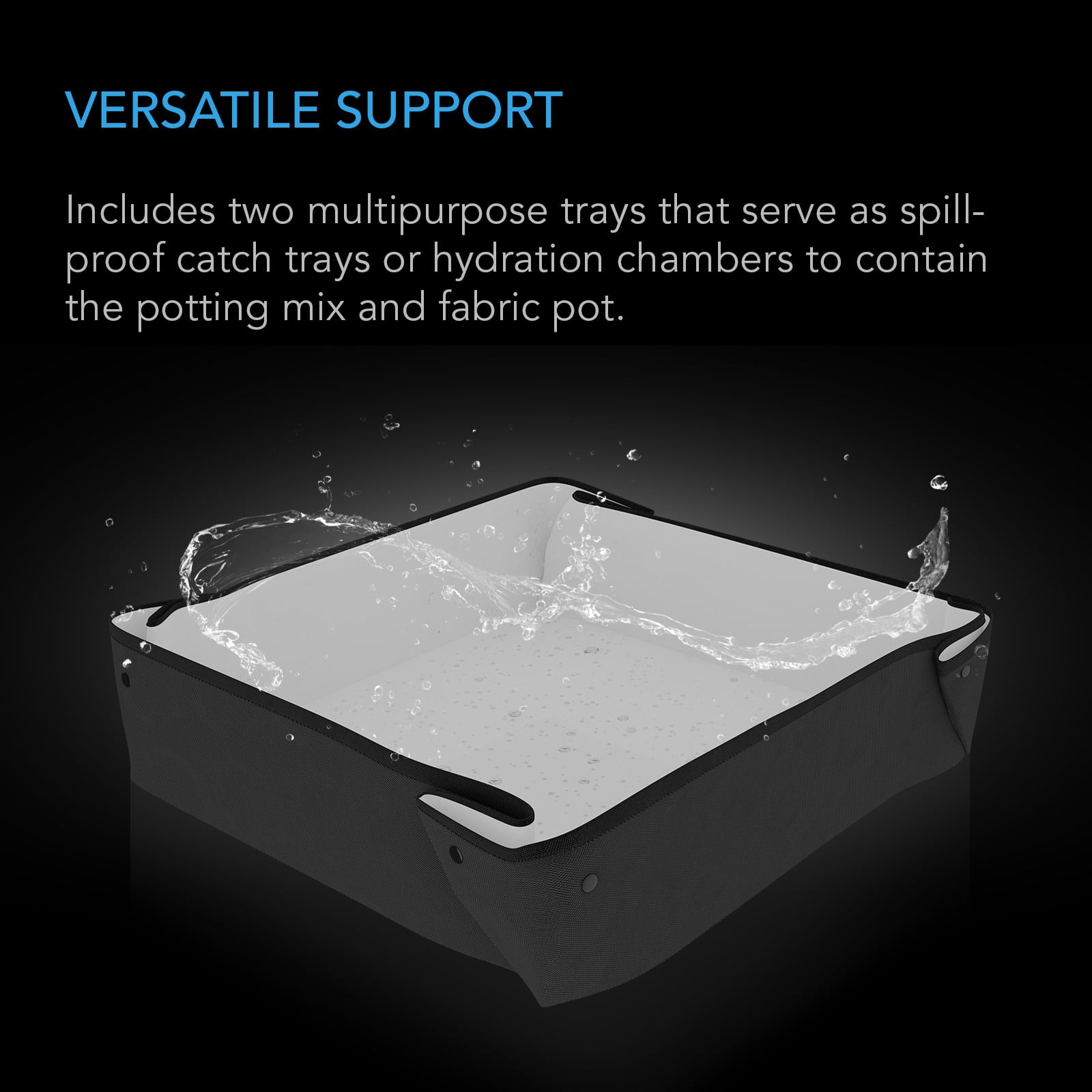 De vanntette trayene kan brukes både ved hydrering av kokosfiberen og som underlag for pottene i dyrketelt, dyrkerom og drivhus. Dette bidrar til å samle opp fuktighet og løst substrat, slik at arbeidsområdet holdes renere og mer oversiktlig gjennom hele oppstartsfasen.