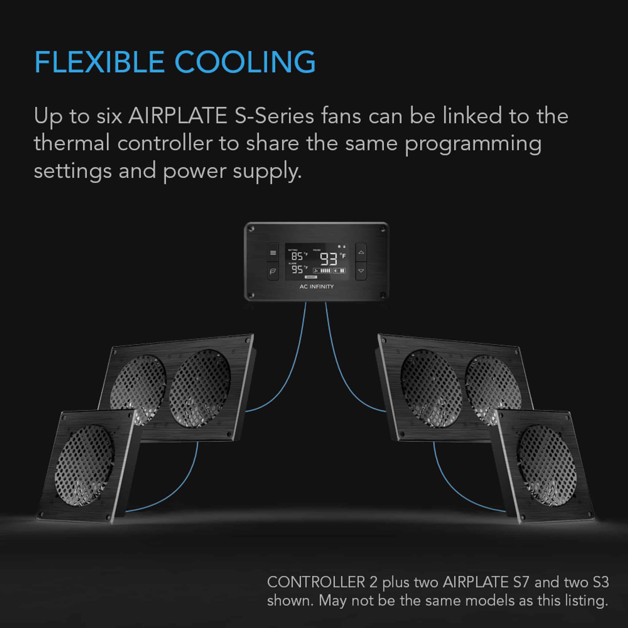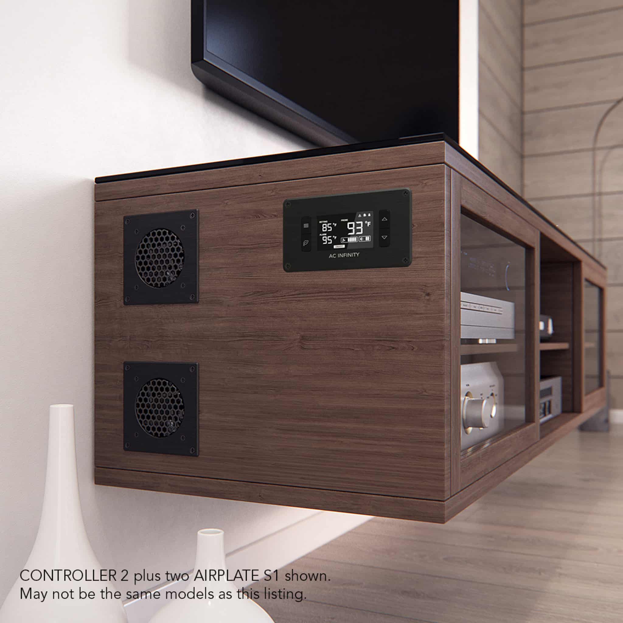 CONTROLLER 2 er utviklet for å styre AC Infinity AIRPLATE Series kabinettsvifter og MULTIFAN Series komponentvifter, og sikrer optimal temperaturstyring for elektronisk utstyr. Enheten har en bakgrunnsbelyst LCD-skjerm, som viser sanntidstemperatur og viftestatus i Celsius eller Fahrenheit.