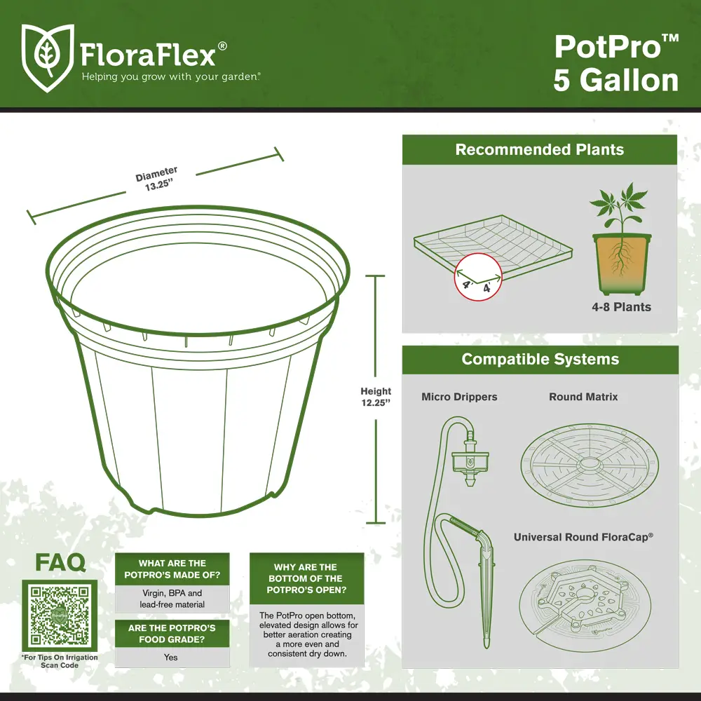 - Sømløs automatisering: Kan kobles til FloraFlex® 10,5 – 12,5 tommers Matrix eller Micro Drip-system for enkel og presis vanning.