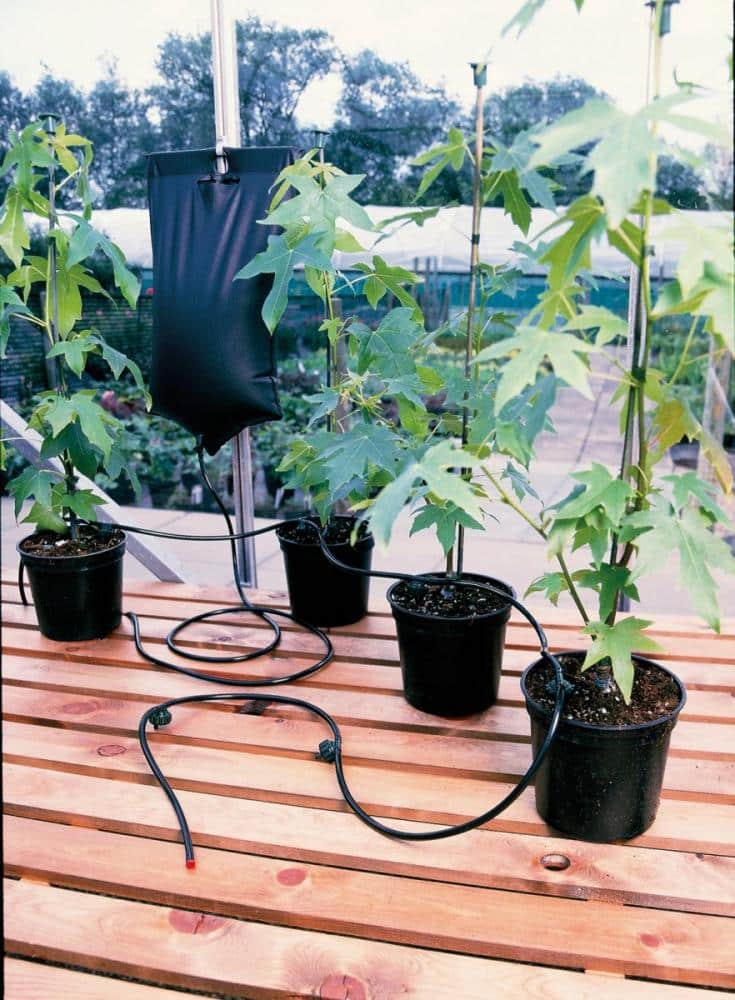 Settet inneholder en 10,5 liters vanntank, 5 meter vanningsslange og 6 justerbare dryppere som gir individuell kontroll over vannmengden til hver plante. Det følger med oppheng som gjør det enkelt å montere systemet i vanlige plantehyller eller drivhusrammer. Vanntanken tømmes vanligvis i løpet av 24 timer, noe som gir nok vanning til å dekke to dager – perfekt når du er borte over helgen.
