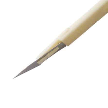 Steril og individuelt pakket skalpell, ideell for kloning og presis skjæring av stiklinger. Håndtaket er laget av slitesterk ABS-plast som gir godt grep og høy overflatekvalitet. Skalpellen er helt fri for latex og trygg å bruke for allergikere.