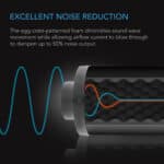 Lyddemperens bølgeformede eggkasseskum fanger opp lydbølger mens den lar luft passere fritt, slik at ventilasjonen fungerer optimalt både ved inn- og utblåsning. De doble aluminiumflensene hjelper også til med å absorbere vibrasjoner, og passer direkte over flensen på kanalvifter for enkel installasjon.