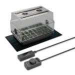 Komplett minidrivhus for forkultivering med fuktdome, integrert LED-belysning og varmematte. Gir stabile forhold for spiring av frø og utvikling av småplanter innendørs.
