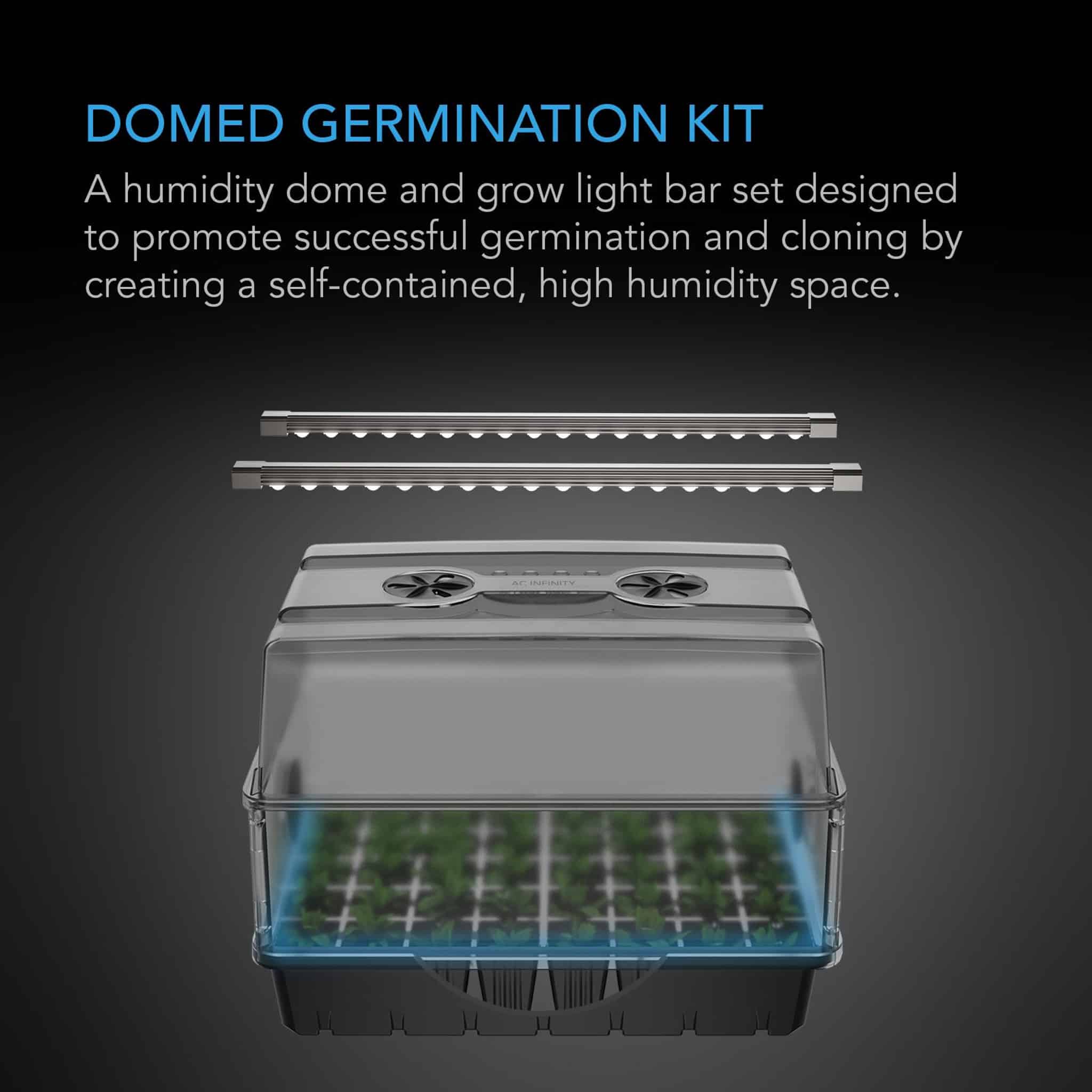 AC Infinity heavy-duty minidrivhus med Samsung LED og høydejustering – 5×8 celler, 3 mm kuppel