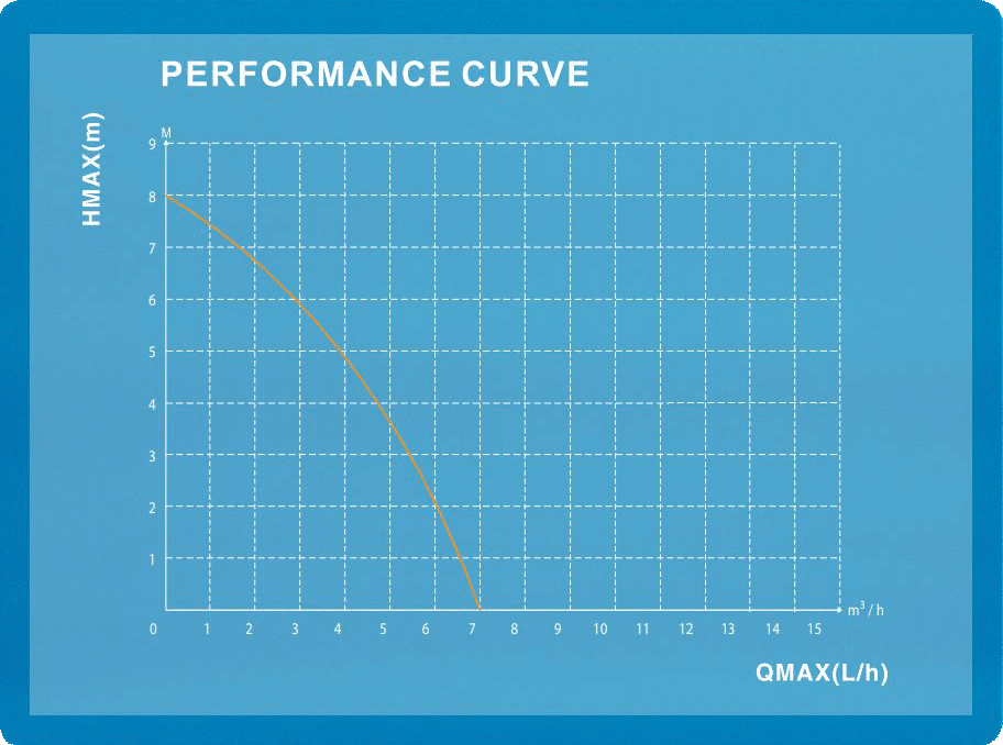 - Maks løftehøyde: 8 meter (0,8 bar trykk)
