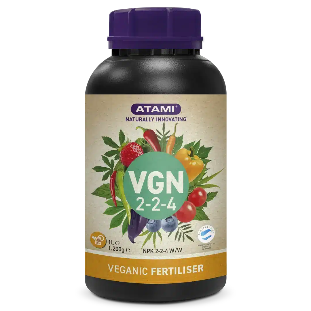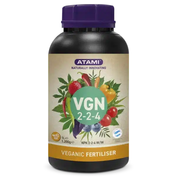 VGN 2-2-4 er en økologisk, flytende basisnæring med ekstra kalium (K) for å støtte sunn og kraftig vekst i vekstfasen. Den er laget av verdifulle plantebaserte restprodukter og er godkjent for økologisk landbruk av Control Union.