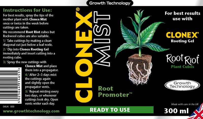 Sprayen akselererer rotdannelsen og støtter utviklingen av et sterkt rotsystem. Den er utviklet for å kunne brukes både med og uten Clonex Rotgele, og gir utmerkede resultater i både jordbaserte og hydroponiske miljøer.