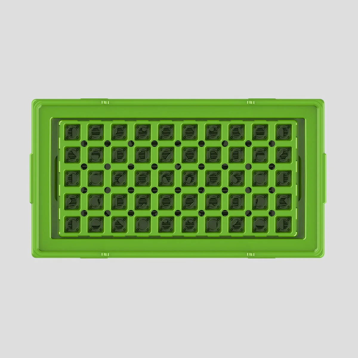 Settet inkluderer kuppel, bunnbrett og innsatsbrett med 50 celler. Perfekt for dyrkere som ønsker høy spireprosent og jevn utvikling fra start.
