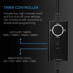 - Gir ikke-påtrengende belysning på under <10 nmol/s i dyrkeområder opptil 3 x 3 meter, med minimal påvirkning på fotoperiodiske planter.