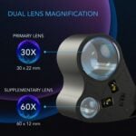 - Inkluderer en primær 30x22mm 30x linse og en ekstra 60x12mm 60x zoom-linse for to-nivå forstørrelse.