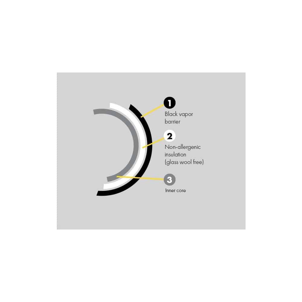 Denne nye generasjonen ventilasjonsrør gir effektiv luftstrøm for både avtrekk og inntak, samtidig som den reduserer støy betydelig – helt uten bruk av glassull.